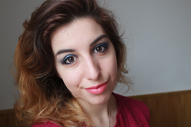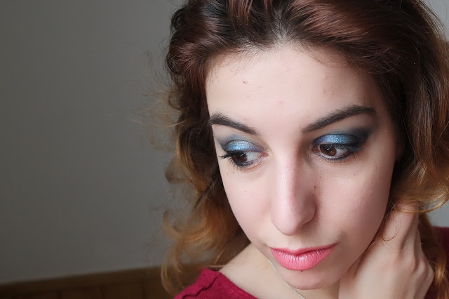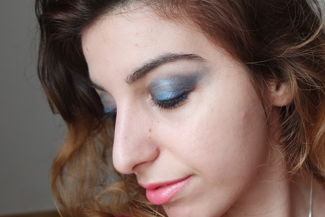 Aujourd’hui donc, c’est avec la deuxième ligne que j’ai réalisé ce maquillage. A savoir que je ne suis vraiment pas à l’aise avec ce genre de couleur bien que le bleu est fortement conseillé pour les yeux marrons afin de les faire ressortir. Je trouve cette couleur assez dure, pas naturelle, impardonnable dans le sens où il faut un teint impeccable et pas trop pale au risque d’avoir un rendu cadavérique…